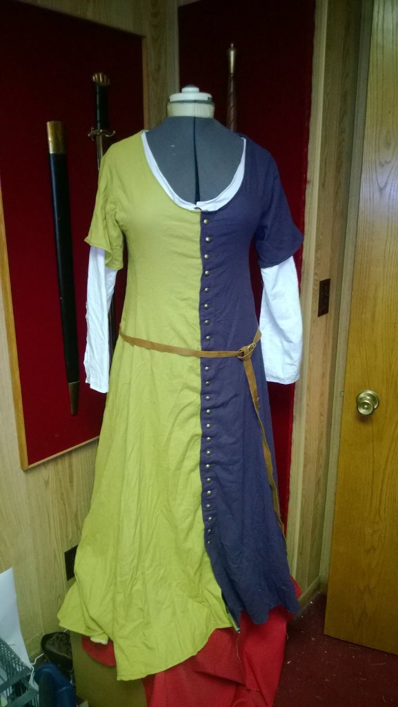 A kirtle layer worn between the shift and the cotehardie could be laced up the front and the sleeves could be buttoned or laced. The kirtle layer is often fitted as to be supportive in the bust and not as long as the cotehardie layer.