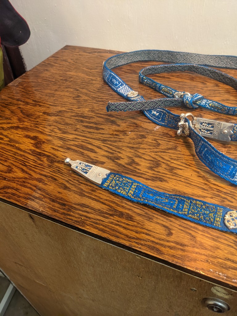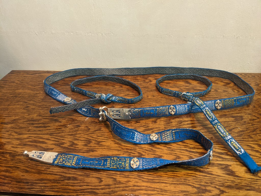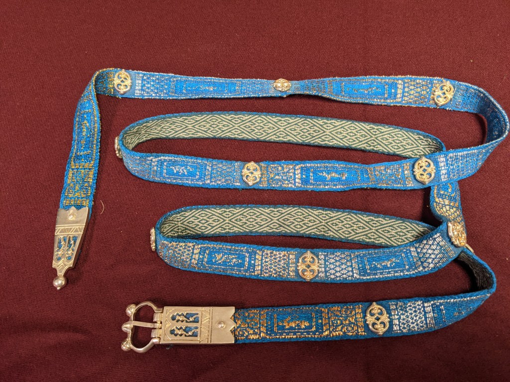 | Title | Brocaded tablet woven belt and garters Belt with Reproduction Buckle |