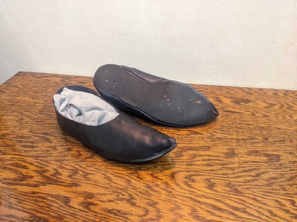 Low slip on shoes that are constructed from 2 pieces of leather. They are sewn inside out and then turned right side out, thus the common name of turn shoes. Shoes like these, in one form or another, have been used throughout much of the period covered by the SCA.