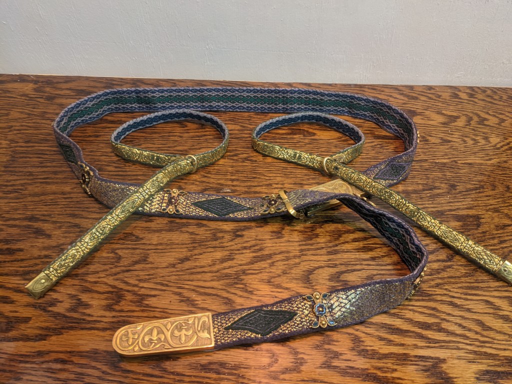 | Title | Brocaded tablet woven belt and garters Belt with Reproduction Buckle |
