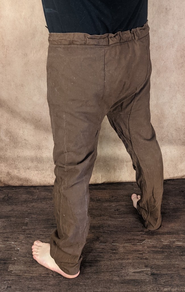 An extant example of trousers found in a bog near Damendorf, Rendsburg Eckerförde, Germany dated from between 100’s and 300’s CE.