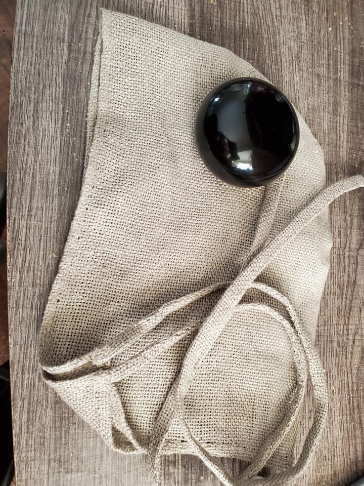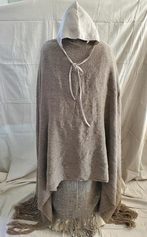 A Jorvik cap, handsewn from linen I wove on a ground loom many Pennsics ago.