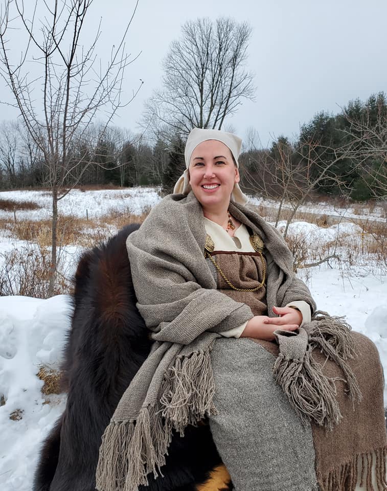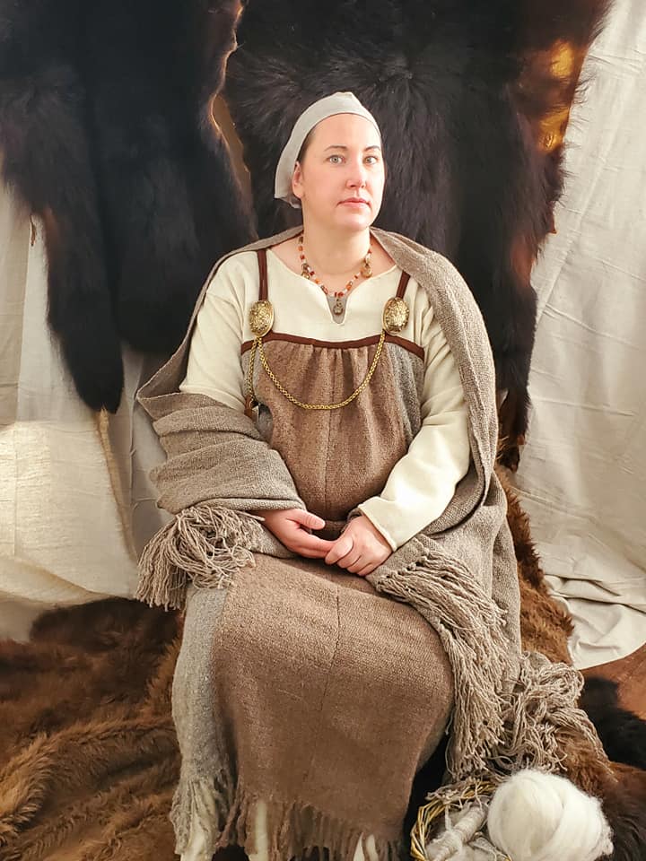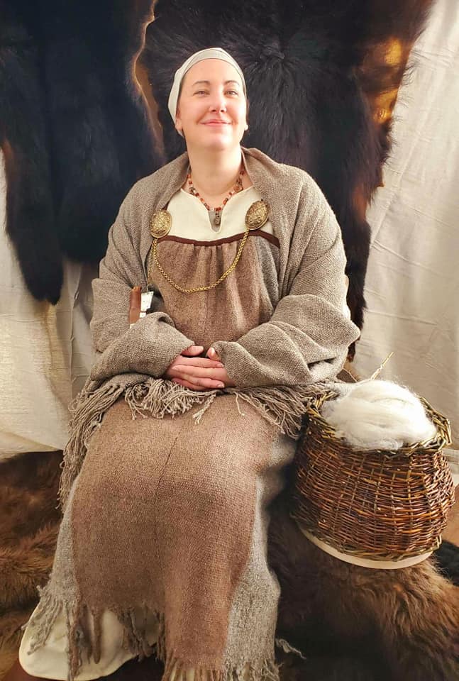 About Æsa: I’ve been in the SCA for about 13 years. While I love sewing, I also enjoy playing with other skills like archery, knife and axe throwing, fiber arts, basket weaving, herbalism, soap making, pottery and brewing/cooking. I love acquiring skills that a Viking wife would have used in her everyday life. While the sewing aspects of the garments will not be difficult, historical clothing can sometimes present challenges as I am paralyzed. I often have to strike a balance between something that looks as correct as possible while also being comfortable, allowing for medical restrictions and not hindering my wheelchair’s movement.