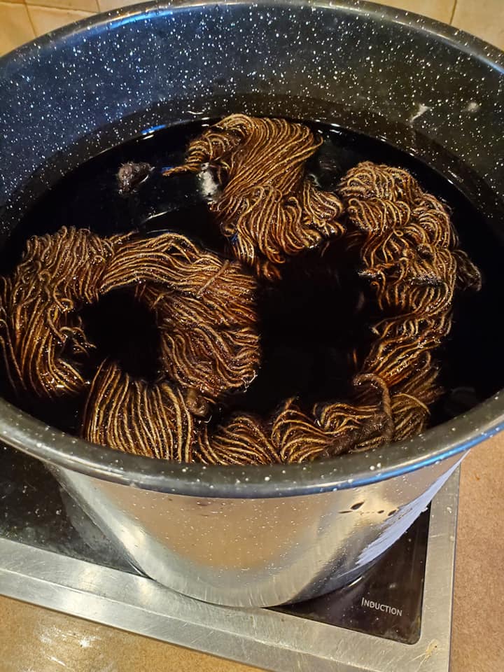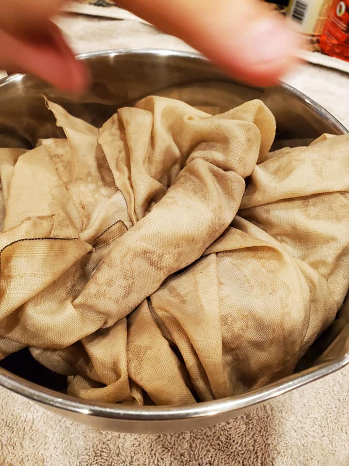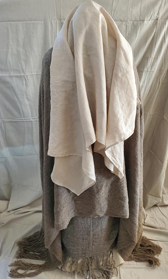 A headscarf of linen, lightly dyed with walnut.
