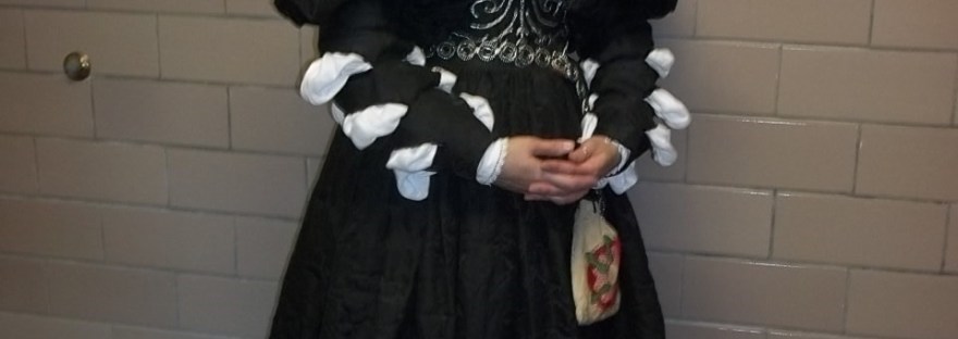 This gown was inspired by Steven Van Der Meulen of Elizabeth the First in The Hampden Portrait painted in 1563 and by a portrait of Mary Queen of Scots by an unknown artist in 1565 during her brief rule in Scotland. The bodice is steel boned and laced on the sides. The lacing should be angling from the armpit to the middle of the back hip. I did not incorporate that into this pattern though.