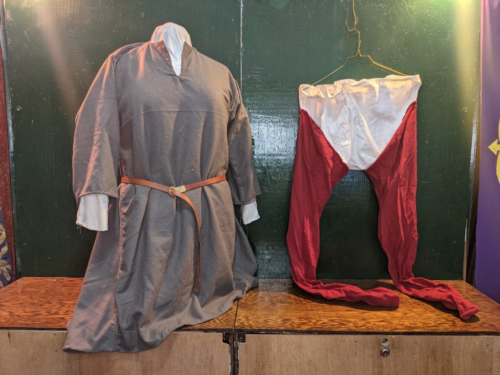 Once you have a list think through what is absolutely essential, what you need first and then what you can add later on. This can give you an order of operation. You don’t need to complete outfit in order to meet the ‘attempt’ at historic clothing requirement for attending events. As stated before, some styles can get you pretty close with just the first couple items. A tunic or tunic dress with a belt, and then add on the bits and pieces as you go.