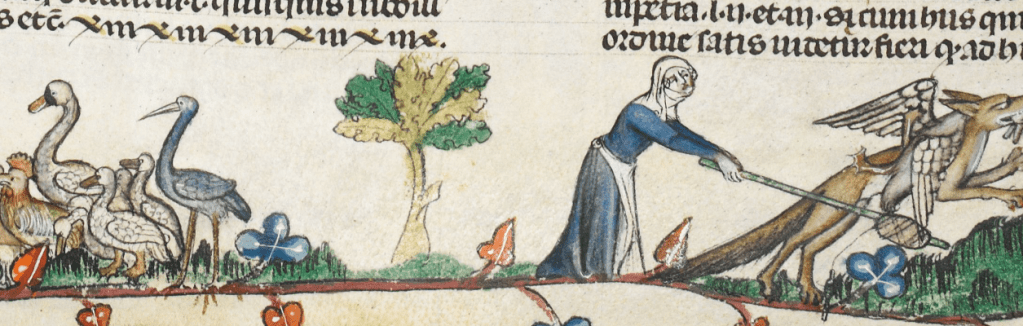 Many illustrations of people from all levels of society survive showing people wearing undergarments but this example gives us insight to the construction technique. The historical use of braies by women is assumed by us and use by members of the SCA is common.