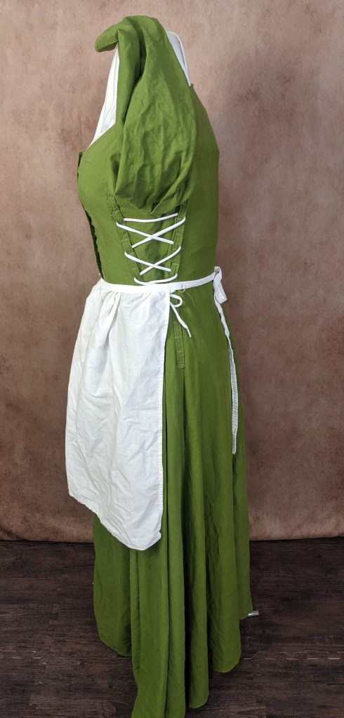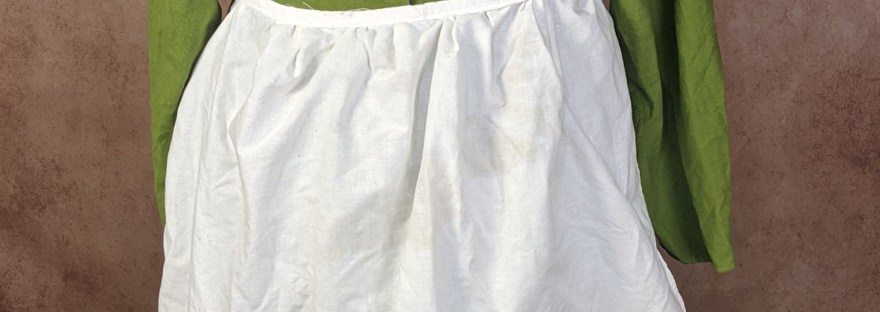Aprons are easily constructed accessories that are also functional accessories to use with your SCA clothing. They can easily be made in a few minutes by machine or just a couple hours by hand. They add to the completeness of an ensemble by adding another layer to the look. They are also very functional in protecting the clothing beneath it.